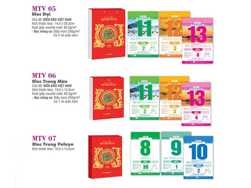 - Các dòng chuyên biệt khác: Lịch bloc 52 tuần, lịch 12 tháng (13 tờ).