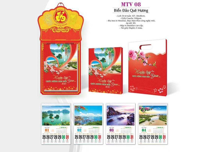 - Khánh treo (Bìa lịch): Sử dụng công nghệ in Metalize, bế nổi 3D tạo chiều sâu và độ bắt sáng sang trọng.